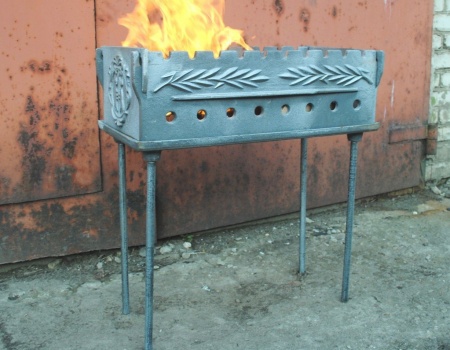 Размеры: Длина 650, ширина 320мм. Высота общая 750, высота жаровни 200мм. Примерный вес 45кг.